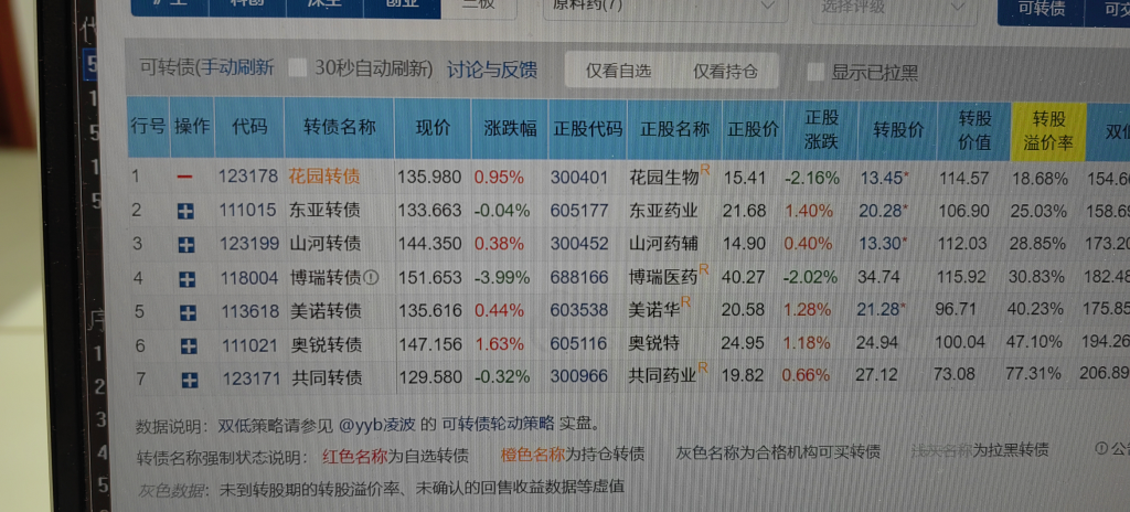 看花园转债的历史溢价率(12月下旬的溢价率),当前按医药可转债估值基本合理。