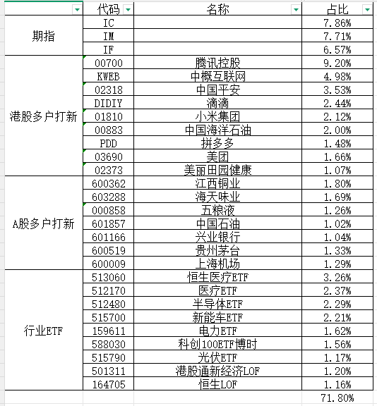 主要精力做转债和现金增强,权益不需要盯那么紧,加上各种抄作业,觉得搞的乱七八糟。大体资金分配是港美股45%,分散多账户港股打新;境内的55%,分成期指吃贴水、A股多户打新、行业ETF。