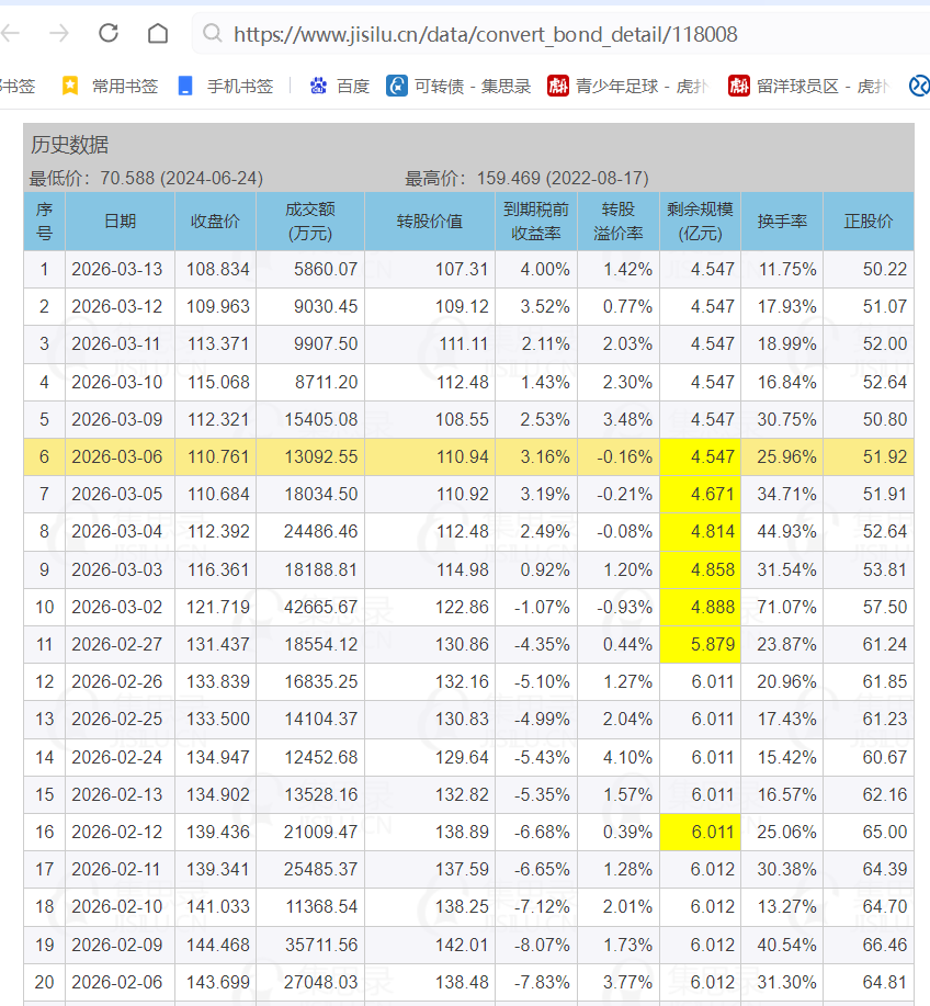 公司也是鸡贼的,宣布强赎但是时间未定。要是再这么跌下去,转股价值低于100就有意思了。现在转债还稳定溢价,也是非常有意思的事情转债溢价就没人转股,已经好多天没人给海优搬砖了