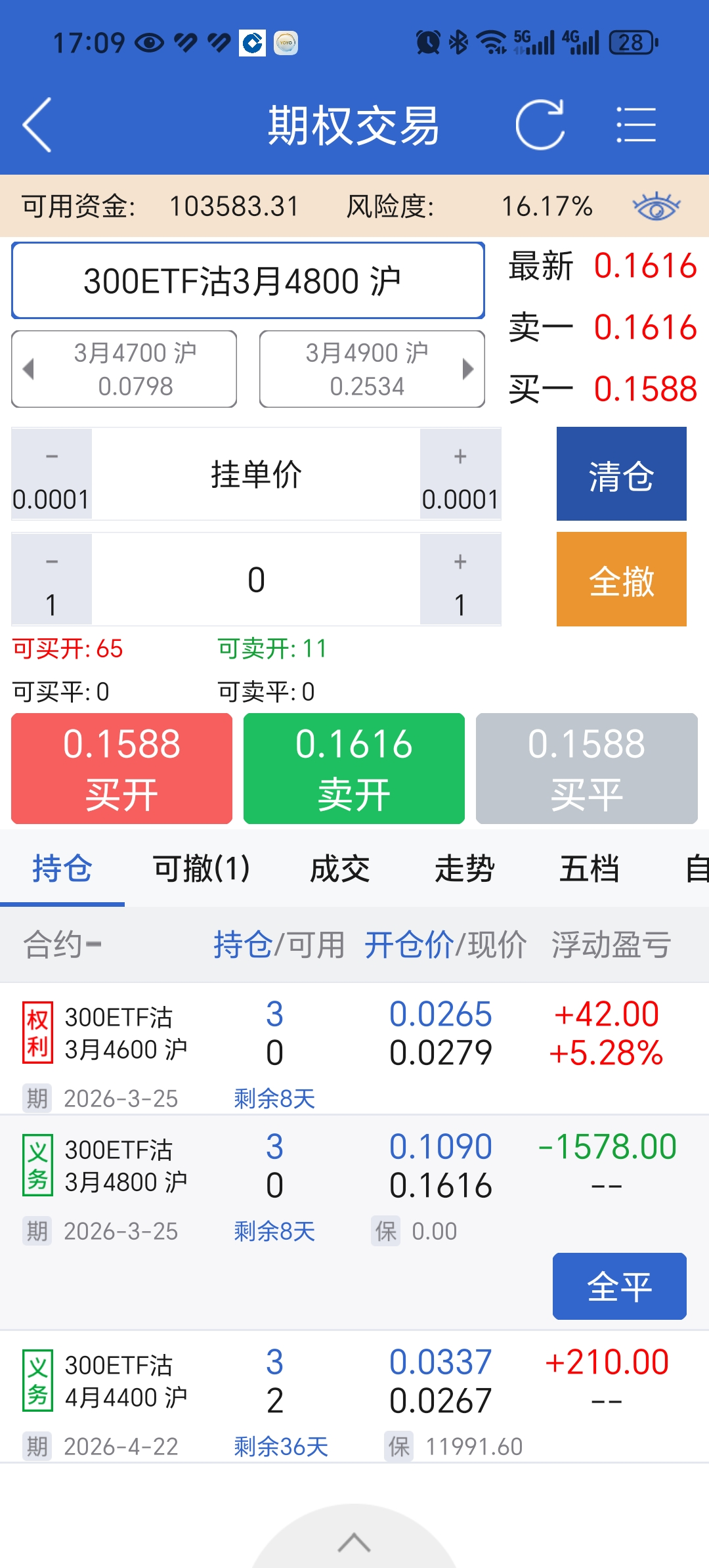 本来早盘高开,计划减仓卖沽但多挂了两三块,没卖出去,血亏