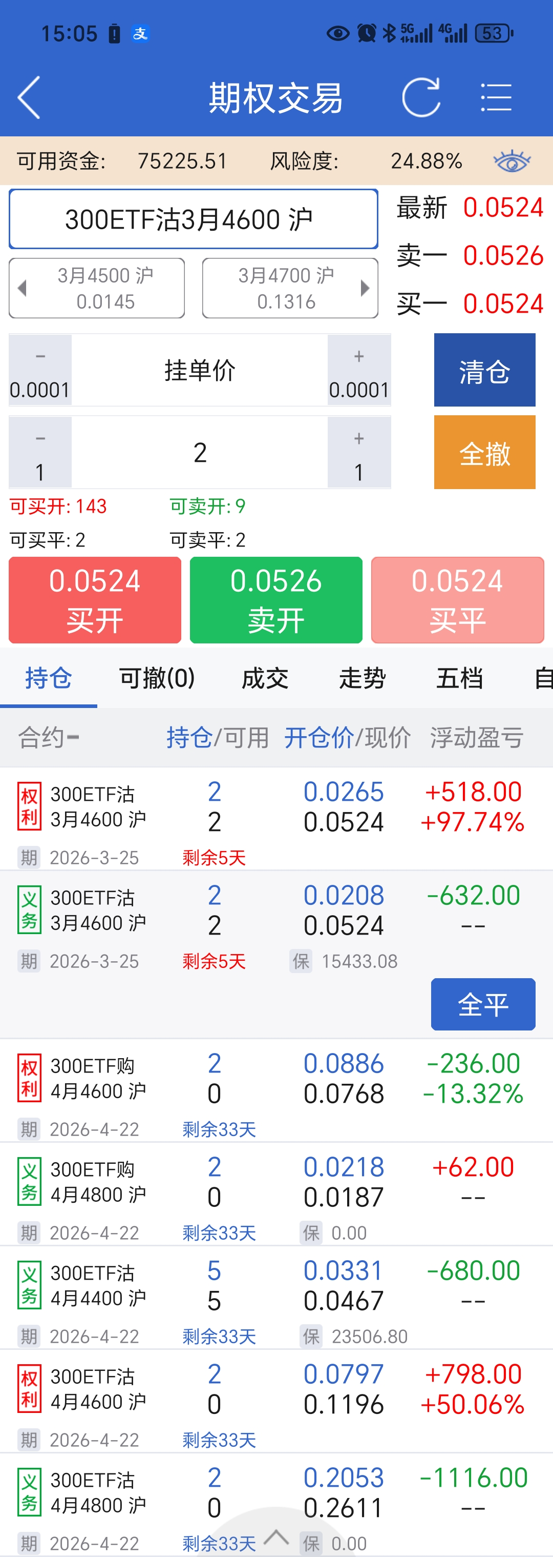 今日操作,3月合约移仓至4月,
