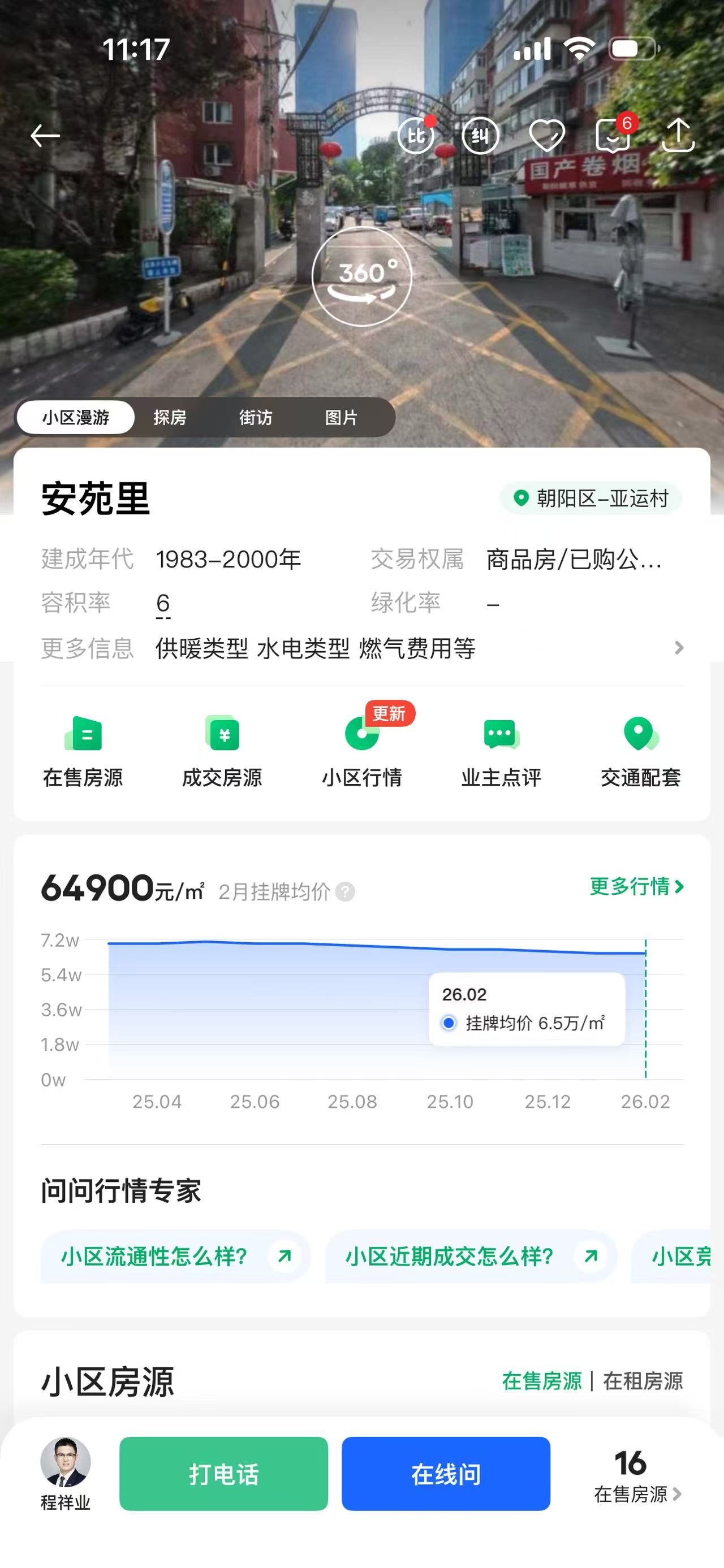 单价6万,60来平,租金6000来元,总价360万,年租金不到7万,回报不到2%