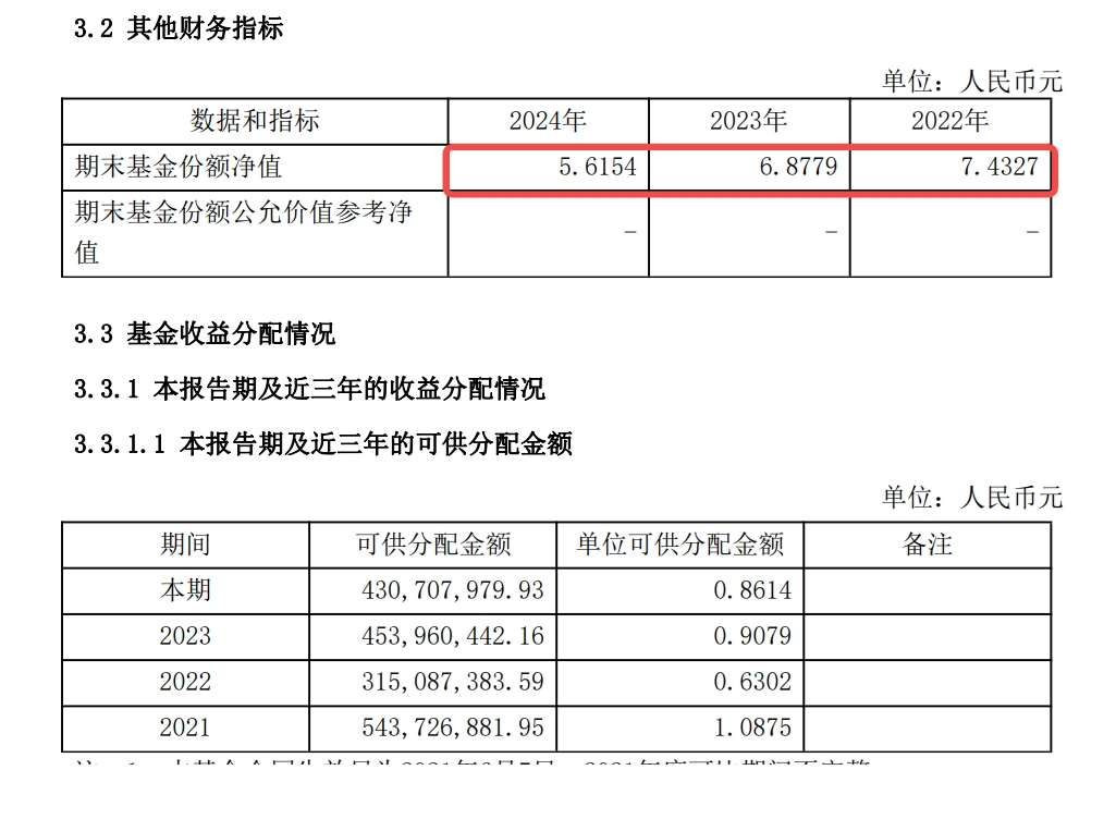 具体也可以去看这支reit的利润表,常年净利润为负,只有在加回折旧摊销后才能有可供分配金额。但Reit的折旧摊销实际是投资者前期投入的资本金换成的固定资产和无形资产,净利润为负说明收到的过路费扣掉运营费用,都不够回本的。现在的所谓分红,纯是在割自己的肉