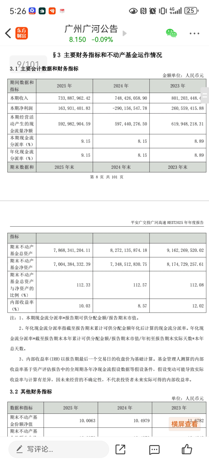 反正24,25两年合计扣完摊销是亏的。单看25年也才2.5%(1.7亿除以70亿所有者权益)。一般公司要看分红,reits要看利润。 )