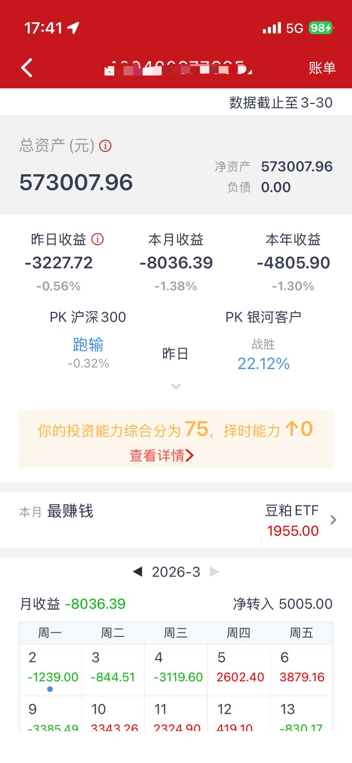 现在市场波动很大,大家纷纷发表后市看法,总体偏空,但我不太感兴趣,也不想调整现有仓位。看着账户由盈转亏,虽然知道这是投资的代价,但心理还是有点影响的,比如迷茫、害怕、怀疑。这段时间也想过,要不要减仓,要不要买认沽……内心经过矛盾的争论,最后还是都放弃了。