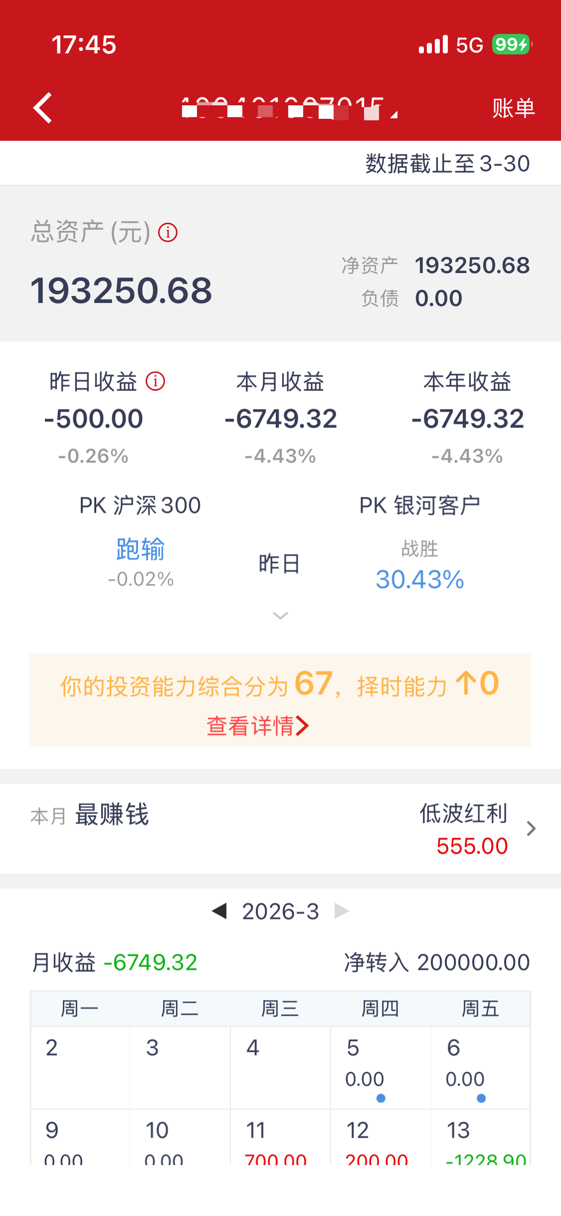 股市的好处,只要买的不是要退市的票,不管山顶还是谷底,不管牛市还是熊市,不管亏损有多深,只要安心做鸵鸟,熬上三年五年或者八年十年,你总会有咸鱼翻生的一天,总会有赚的一天。所以,各种神仙、大神特别多,个个都可以说自己是东方不败这个是普通人在低估时定投指数的逻辑,我也一直是这么操作的。但随着投资金额的逐渐加大,人是很难没有心理波动的。