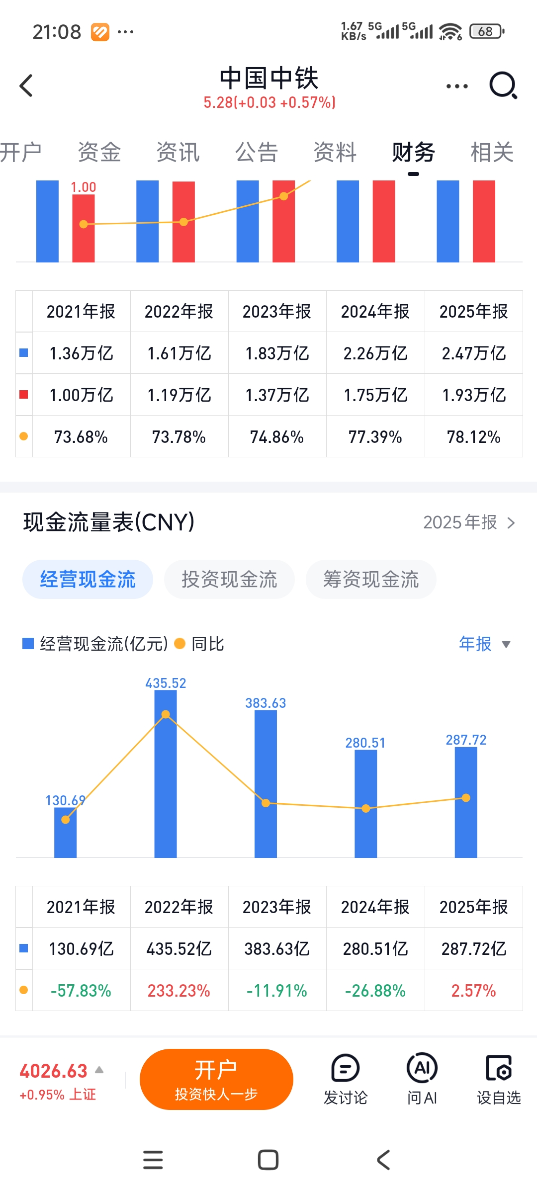 1、中国中铁,市净率0.28,股息率7.32%。目前H股比A股折价32%,连续7年分红,ROE 5.77%,2023年以来收入及利润持续下降,近一年利润下降18%。我个人觉得虽然持续下降,但是0.28的市净率也是明显低估的,怎么也是个央企,净资产每年都在增长,年化增长率16%。并且还没亏损,给个快破产的估值,明显是不合理的。