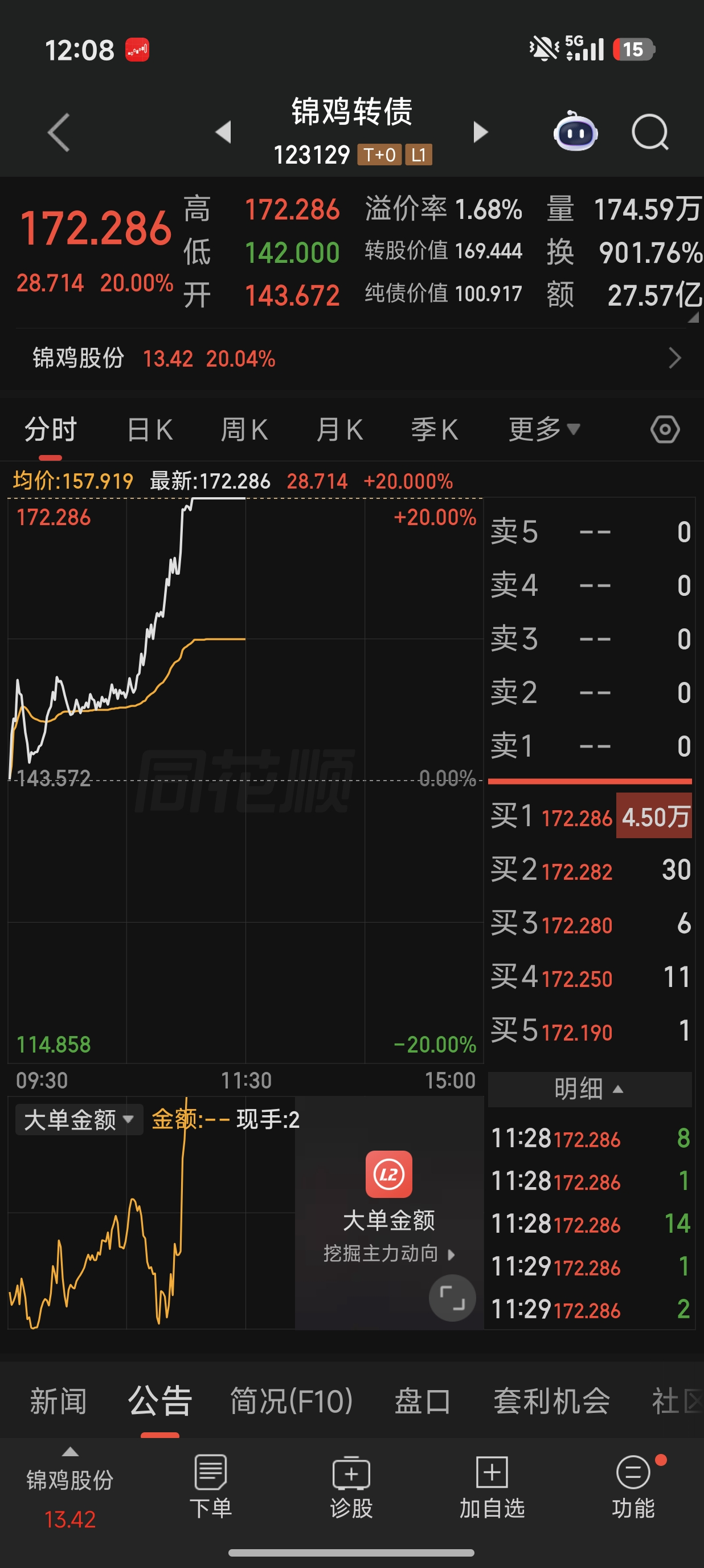 今天锦鸡转债满足强赎条件后,我分析大概率公司不会强制赎回,理由是项目12亿多,募集资金6亿,自有6亿多,公司现金流不是很充分,去年亏损了几千万,2亿的赎回资金压力不小。宁夏项目刚刚满产,利润相当高,正是用钱开疆拓土的好时候,此时赎回完全没有必要