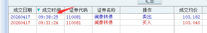 今天我挂单卖出闻泰转债,非常奇怪,怎么会在9:38成交103.182