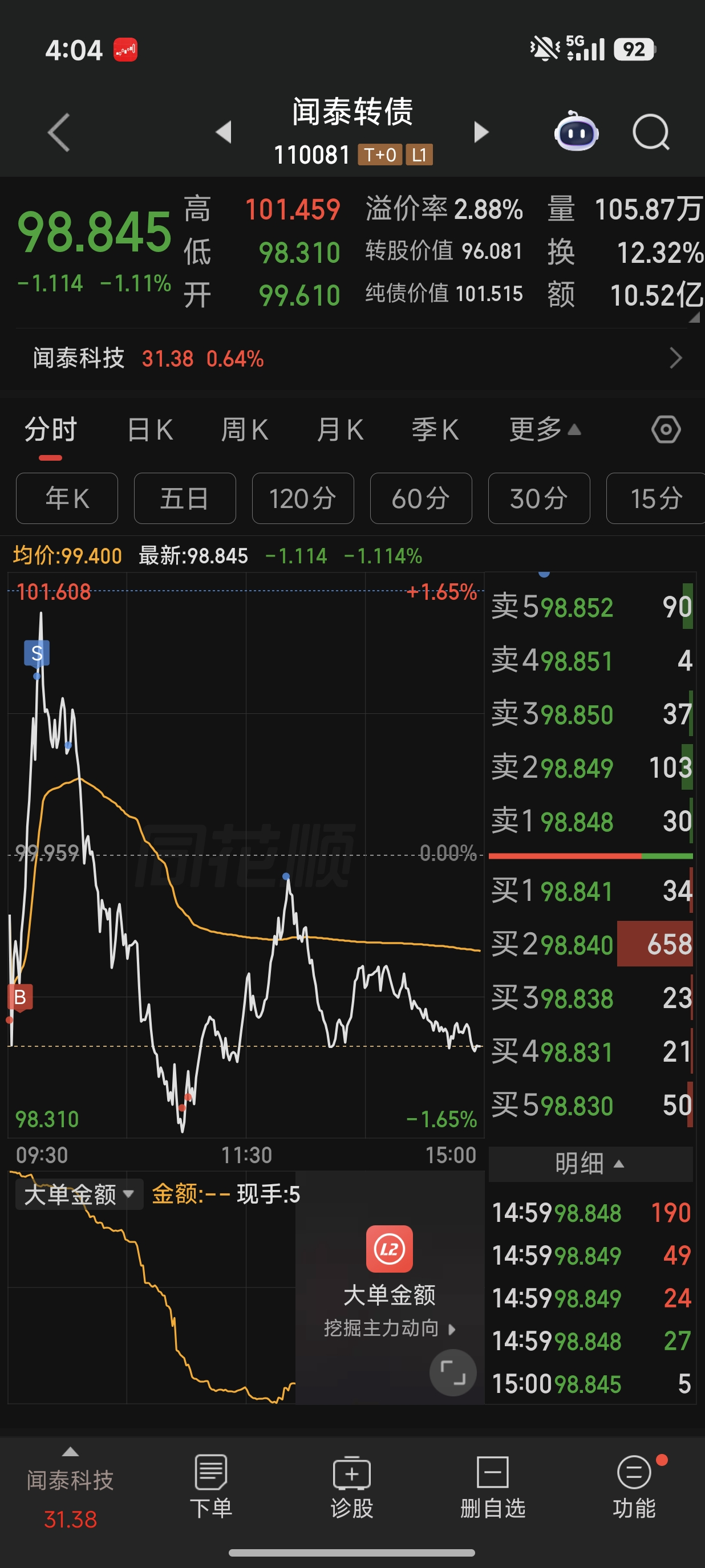 已经大半年没有买过可转债了,今天看价格不错,就买了,成本98.8