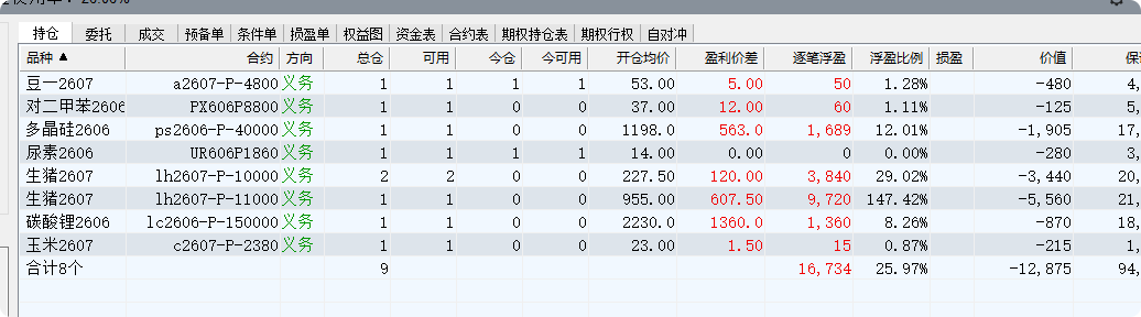 股票如果波澜不惊,ETF期权不一定有什么机会,但是期货账户,多品种的商品期货和期权组合,给了跟多的交易机会。