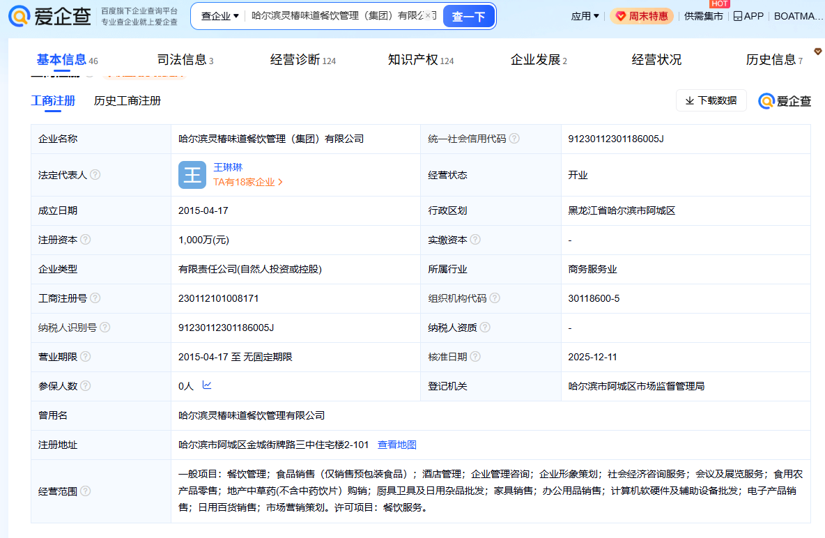 哈尔滨灵椿味道餐饮管理(集团)有限公司,有了解的吗