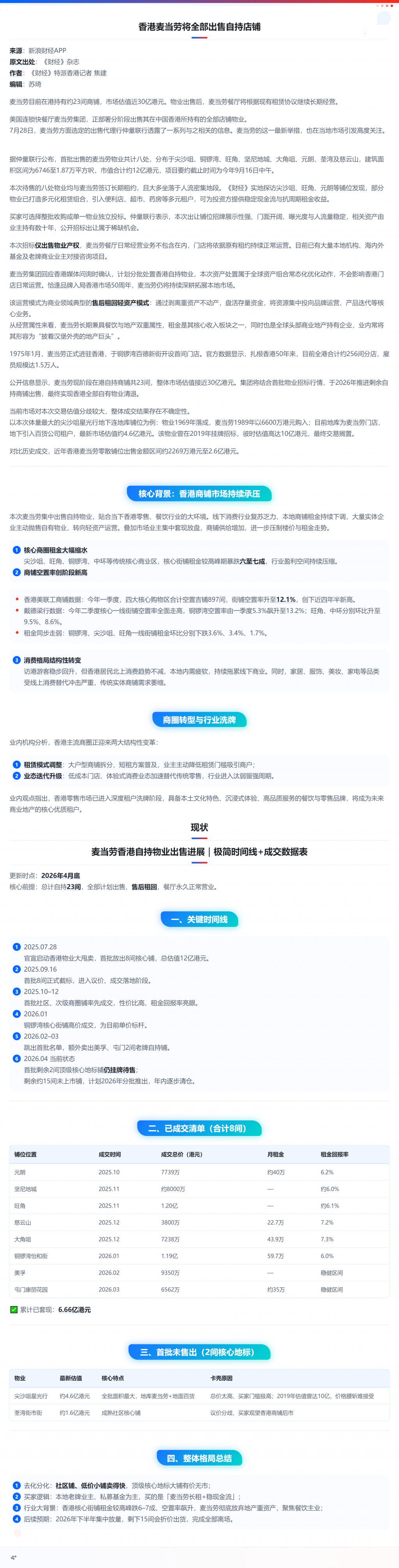 是二手房东吧,商业中心里面的麦当劳也是租的,应该是赚加盟费截至 2024 年 12 月 31 日,麦当劳全球共有43477 家餐厅,其中 95% 以上为特许经营加盟店,仅不到 5% 为公司直营店。其物业结构的官方权威数据如下: