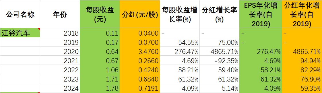 初始分红的确定,江铃汽车2024 年报分红为每股0.7191元,计为D0.