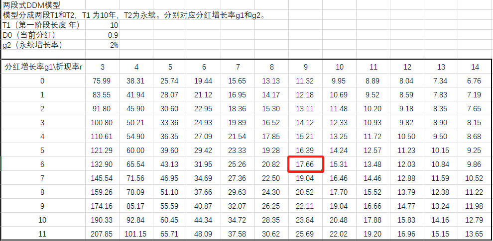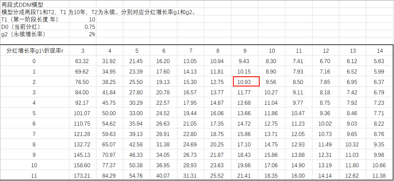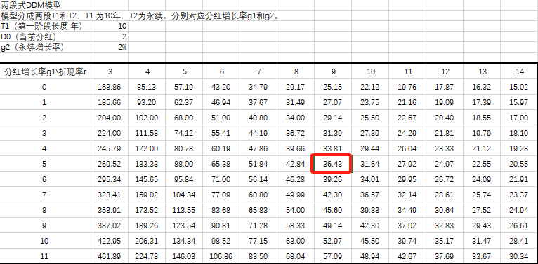 在永续期间(T2),我们假设分红增长等同于GDP的增长,按2%计算,计为g2.