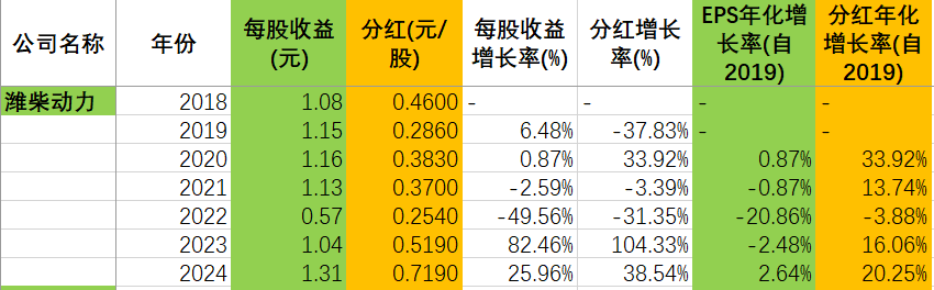 初始分红的确定,潍柴动力2024 年年报分红为每股 0.719(税前),计为D0.