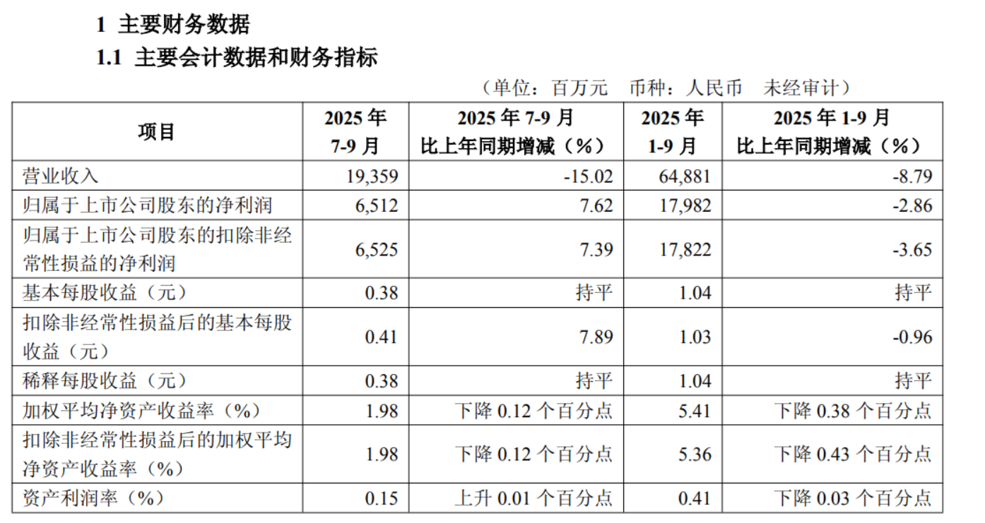 2. 再看实际。2025年实际拨备覆盖率:149.33%,2024年同期拨备覆盖率:165.89%,如果将2025年三季度的拨备覆盖率保持在2024年同期的水平,则“2025年1-9月累计的扣除非经常性损益后的基本每股收益”只有0.718元,相对于去年同期的0.82元下降了12.44%。