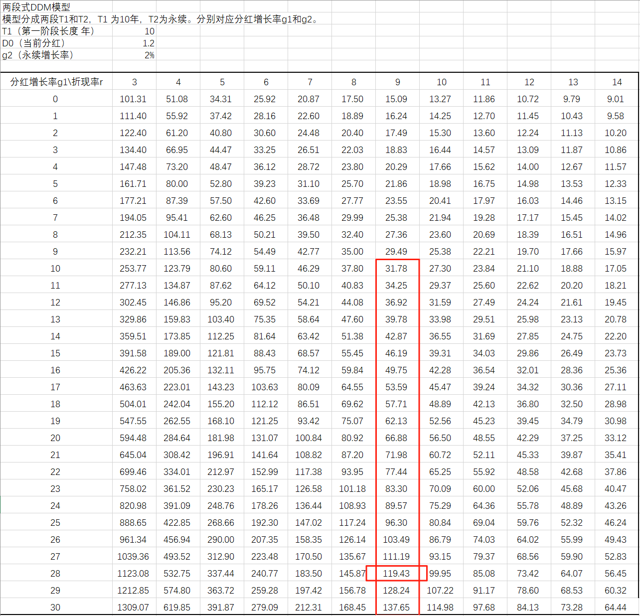 另一个看的出你用了过往的分红增长率作为参考,但预期未来十年预期分红增长率的时候,是随便估了个值?还是说有个系数计算的?