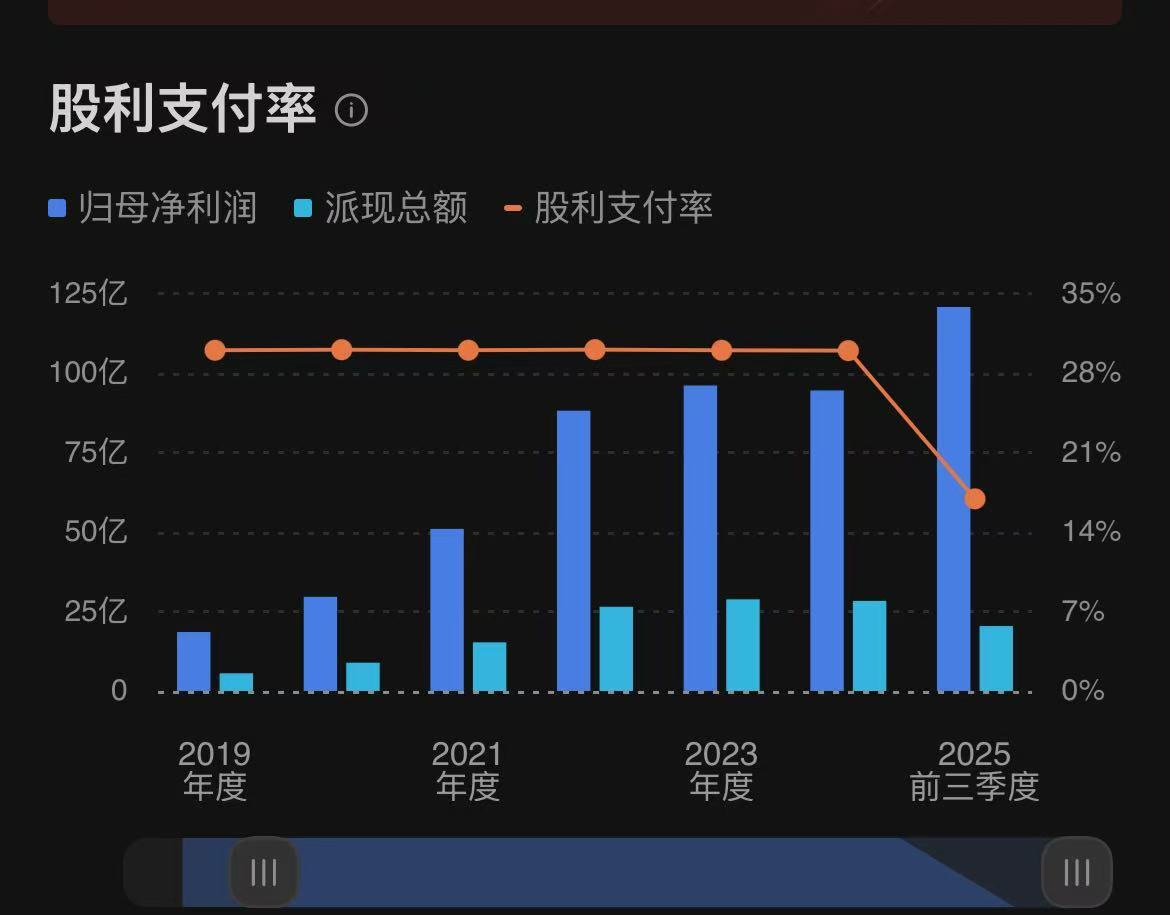 2025年三季度“归属于上市公司股东的净利润”同比下降9.92%,“营业收入”下降15%。未来分红能力存疑。
