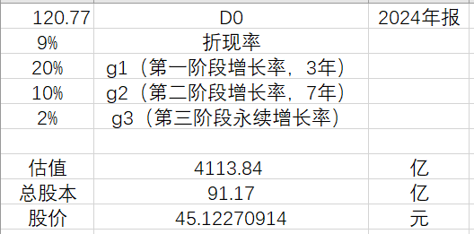 初始分红的确定,我们以2024年每股分红3.5元为起始点,计为D0.