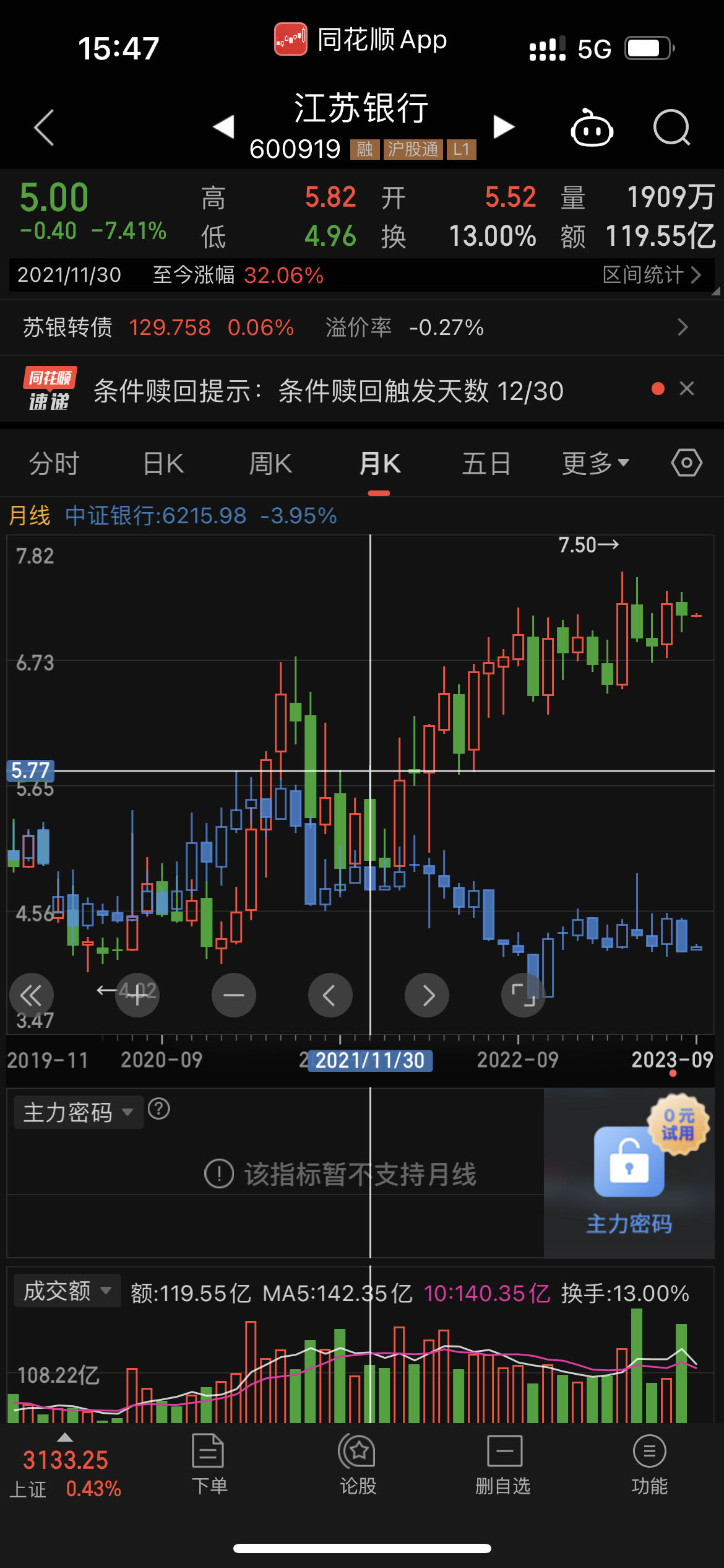 "江苏银行2023年3季度ROE为-3.86%,去年同期为5.38%,增长-171.75%。江苏银行一下子排到那么底了啊,有考虑可转债的转股么?