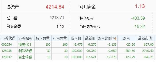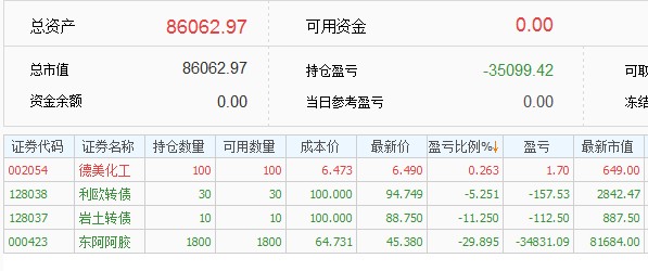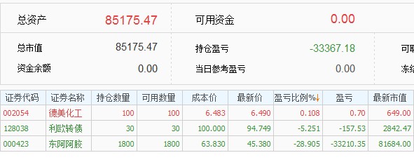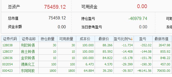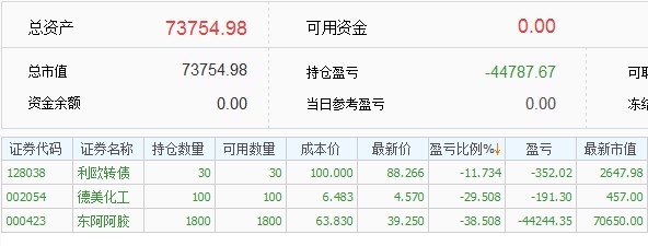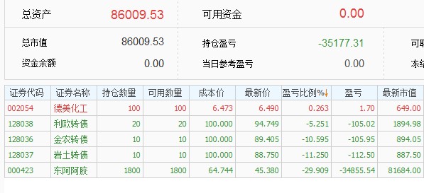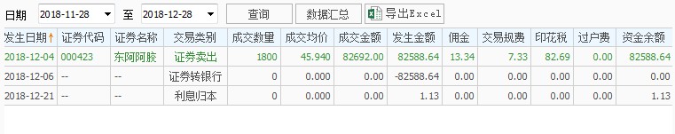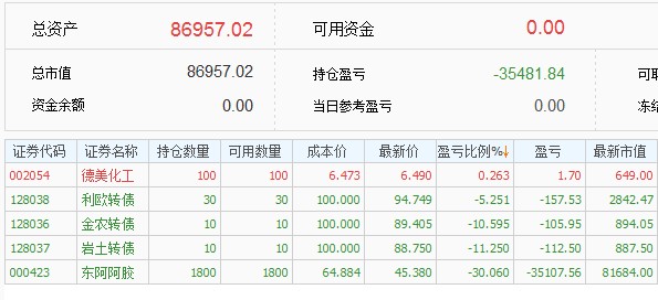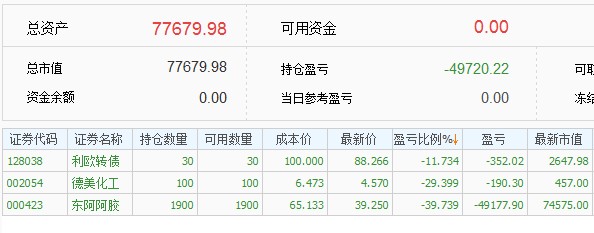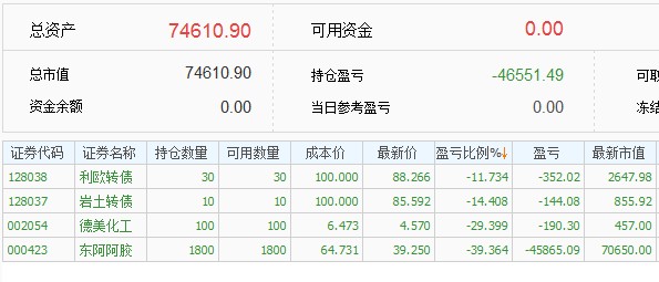 2,跌幅太大强平这个问题年初的时候就想好了应对策略,选股的时候考虑的是股债平衡,银行股比较稳定,把银行股当做债来持有的,整体仓位扛35%的跌幅,阿胶跌得多一些,还有银行来做担保品,今年新股发行太少,新股收益不能覆盖融资利息,才卖掉银行股还清借款换到期货里面,要是新股给力就不换了,应该还是用融资在打新股