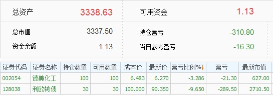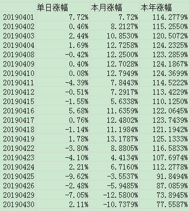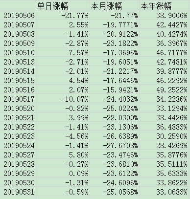 这个亏损百分比是没有计算杠杆的,杠杆大约是一倍,所以现在的亏损是50%,年初资金是130万,现在是67万,已经腰斩了