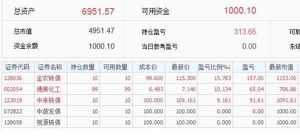 目前的仓位比较合适,心态也很舒服,又恢复到平静的状态,没有股票交易,只参与转债申购