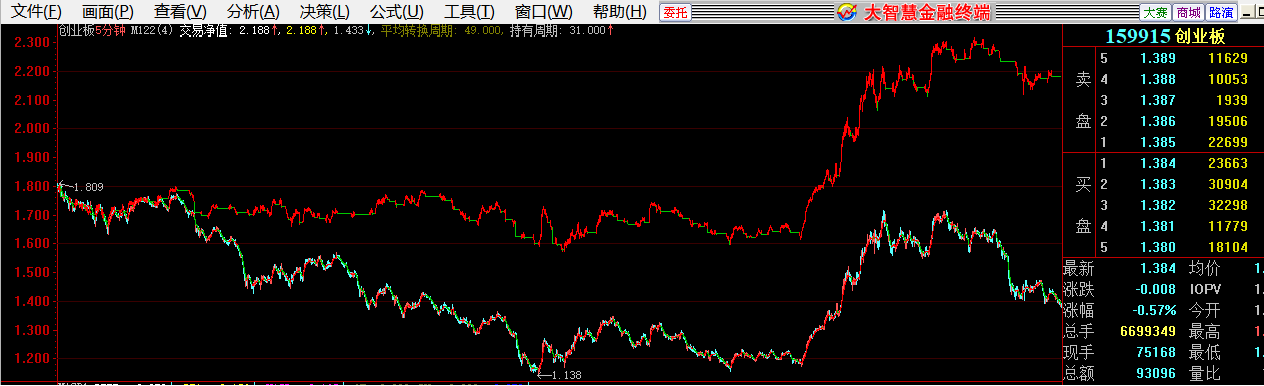 而创业板ETF就是个强趋势基金,因为做创业板ETF的人比较冲动,胆子也大,涨的时候涨的猛,跌的时候跌的也猛,所以就特别适合使用趋势指标。