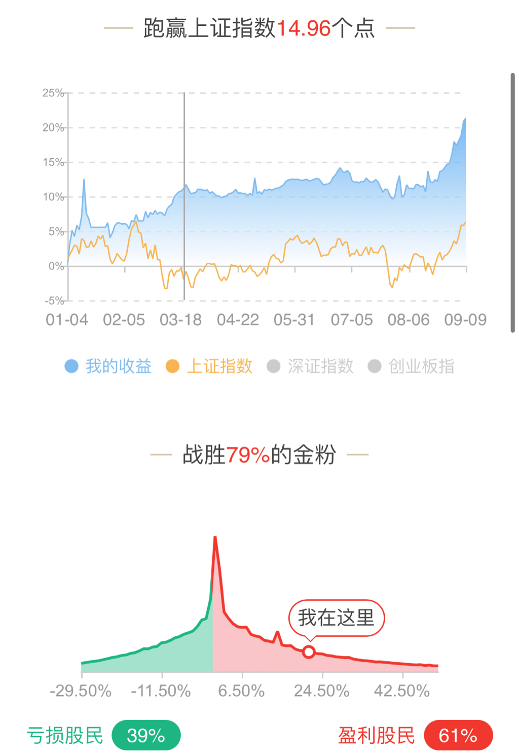帮别人打理一个账户,五月十七号入市,赚了百分之四十多,券商统计数据说我打败了百分之九十三以上的客户。
