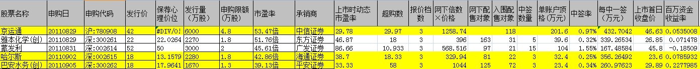新股超购数据以及打新建议(黄色标记为建议可打新股)。